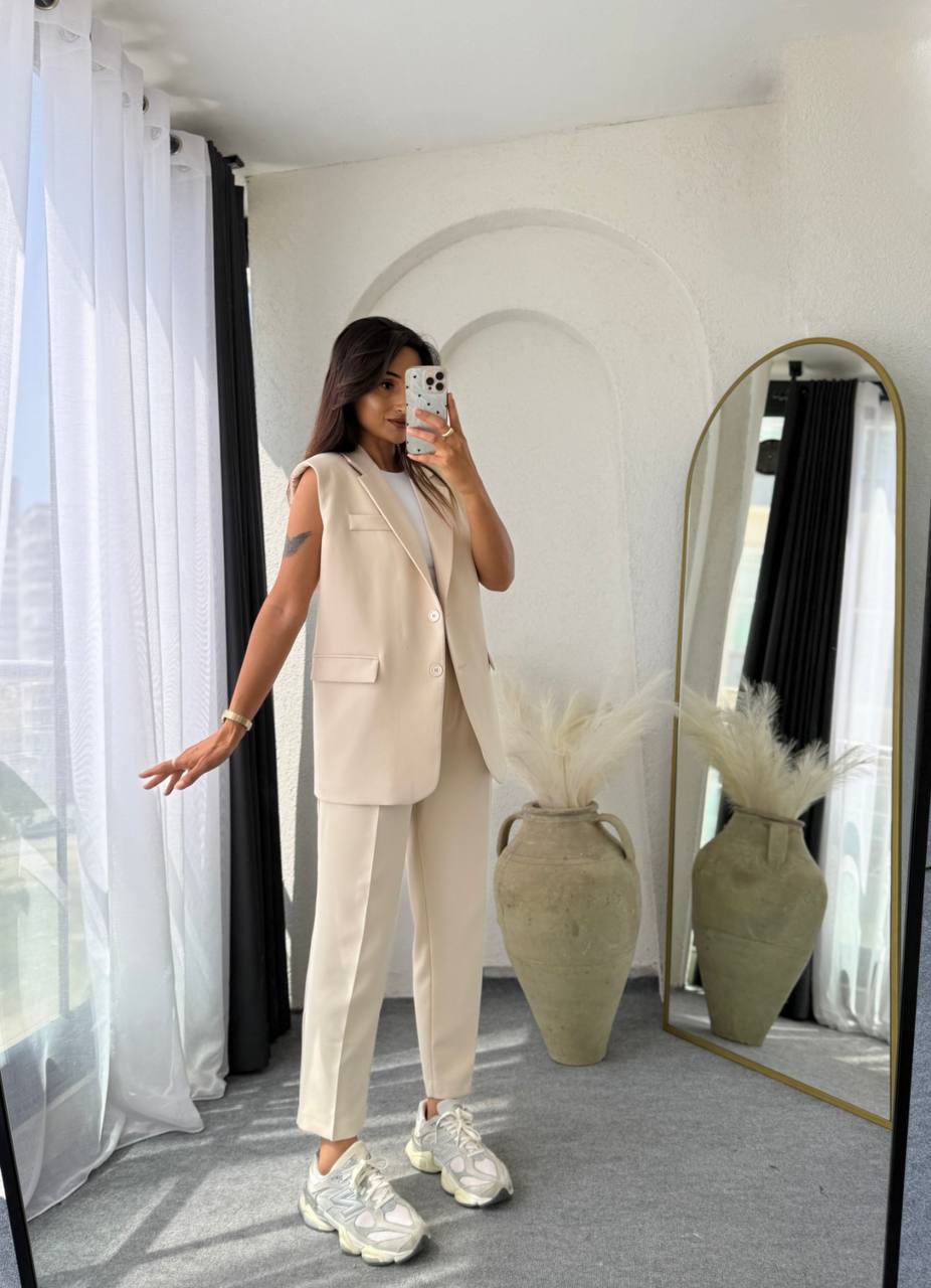 Костюм 2-ка: Пиджак без подкладки+Брюки сзади на резинке бежевый