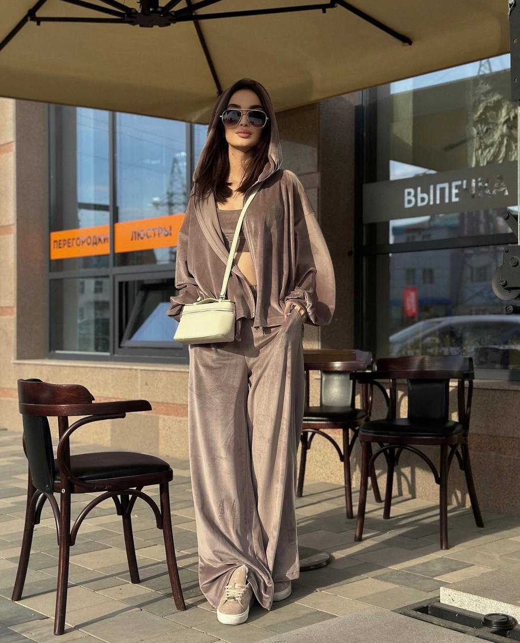 Головна » Магазин » Одяг » Жіночі костюми » Костюм 3-ка велюр (кофта+штаны+топ) мокко