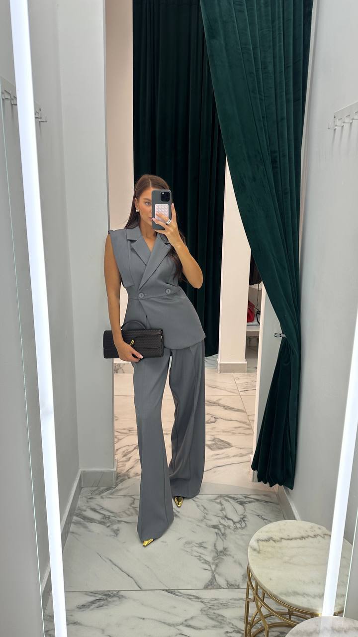 Костюм Безрукавый жилет с запахом+прямые брюки графит