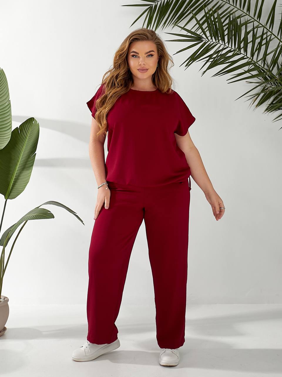 Костюм блуза с кулиской+штаны с высокой посадкой бургунди