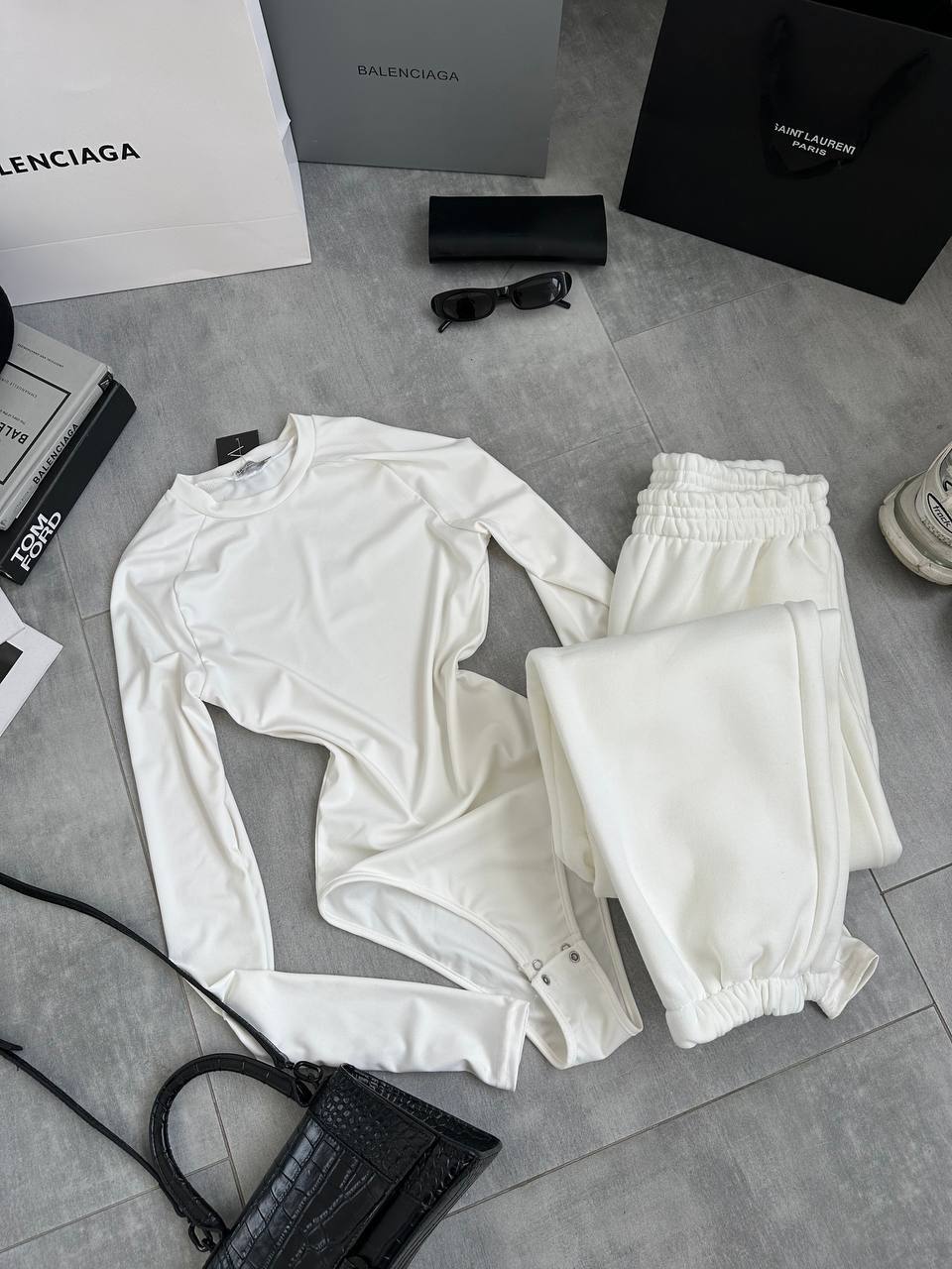 Головна » Магазин » Одяг » Жіночі спортивні костюми » Костюм: боди микродайвинг + джогеры двухнить белый