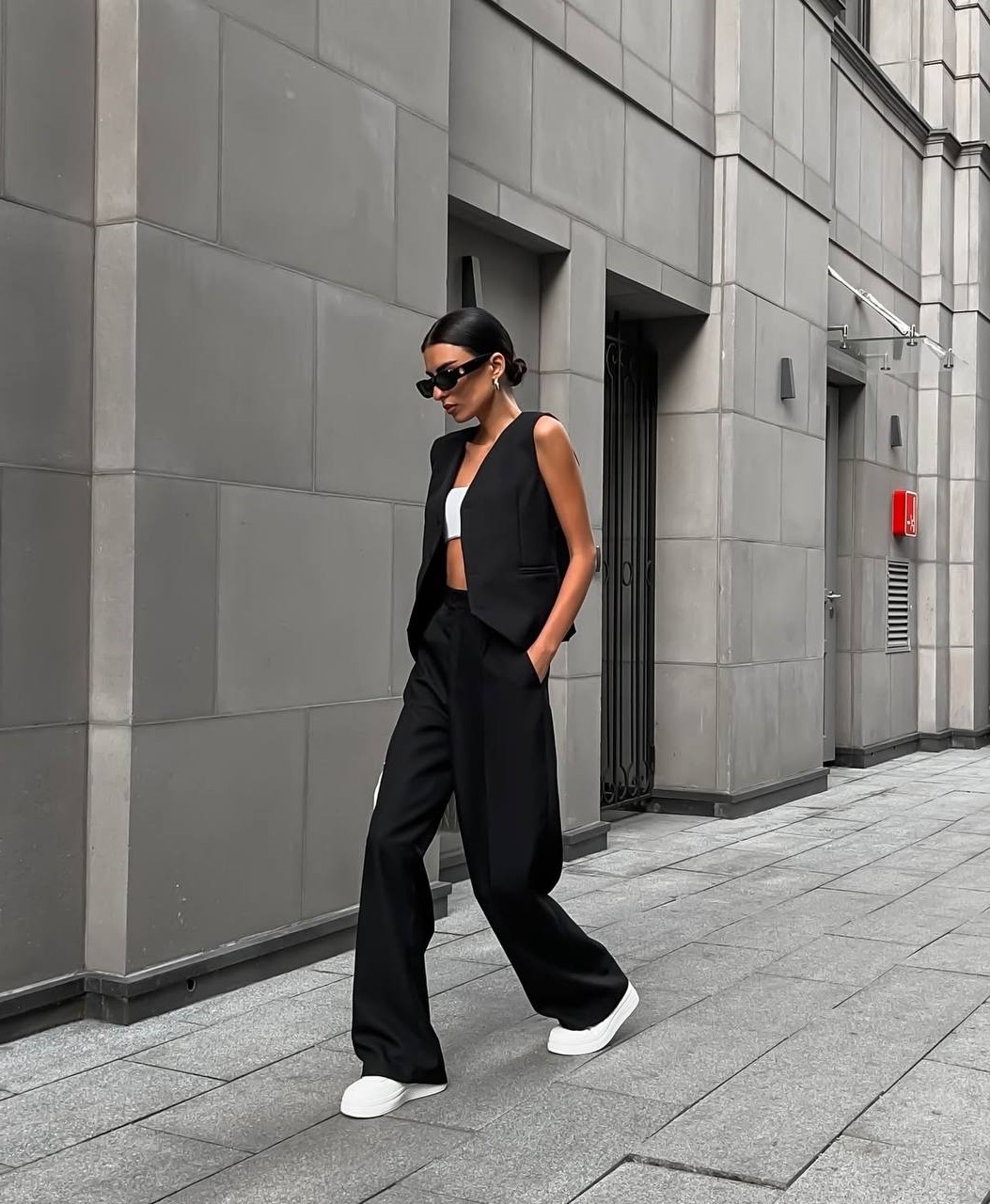 Костюм двойка, брюки палаццо + жилет
