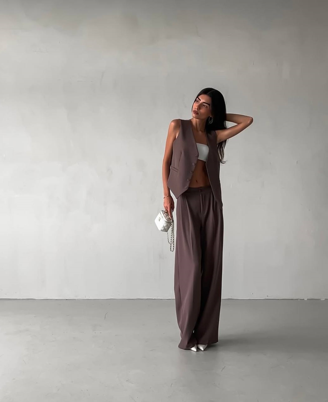 Костюм (брюки палаццо клеш от бедра+жилет) шоколад
