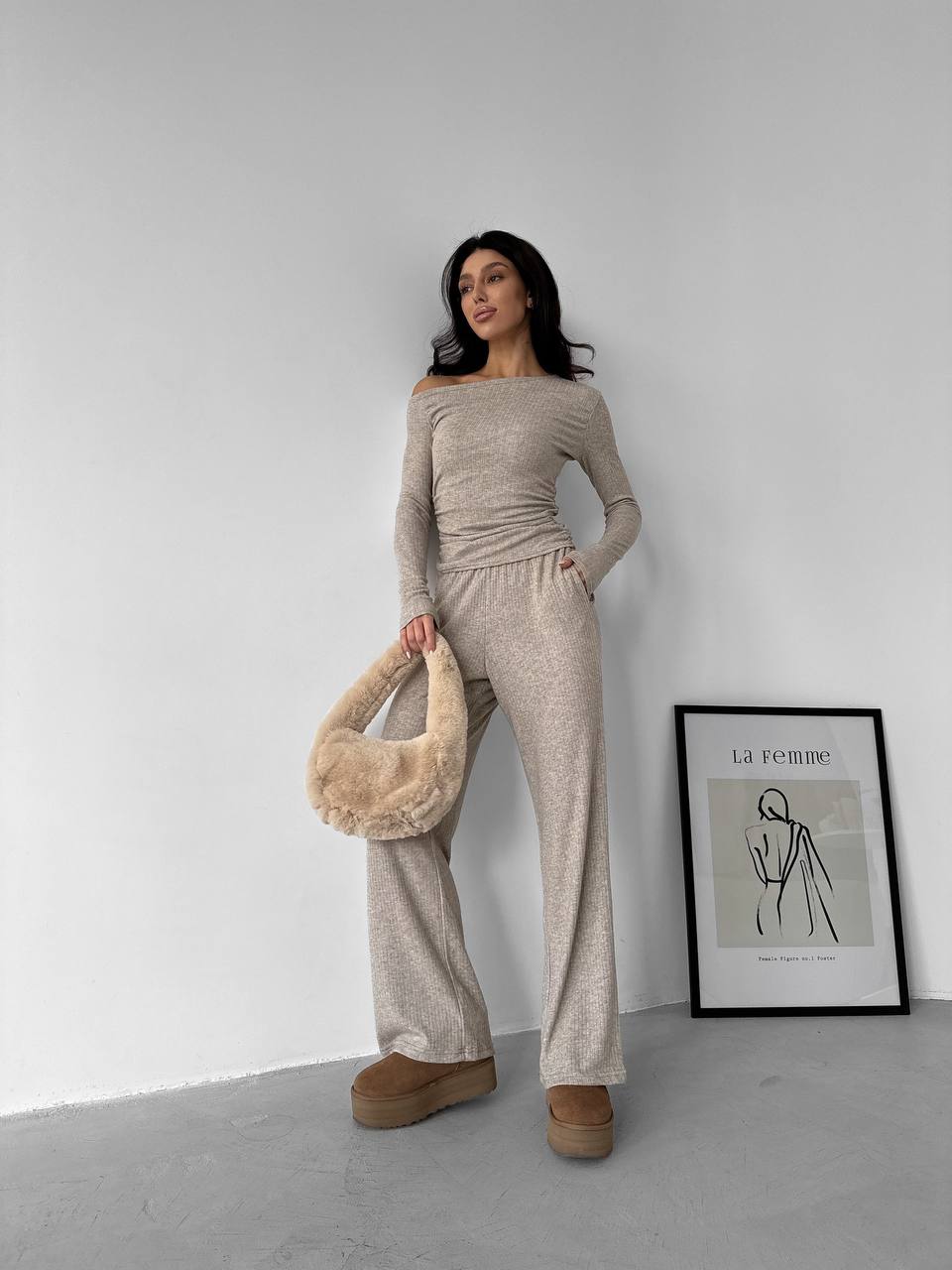 Костюм Брюки свободного кроя+кофточка со сборкой по бокам (ангора рубчик) беж меланж
