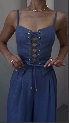 Головна » Магазин » Одяг » Жіночі костюми » Костюм (брюки свободного кроя+жилет на бретелях на шнуровке) джинс