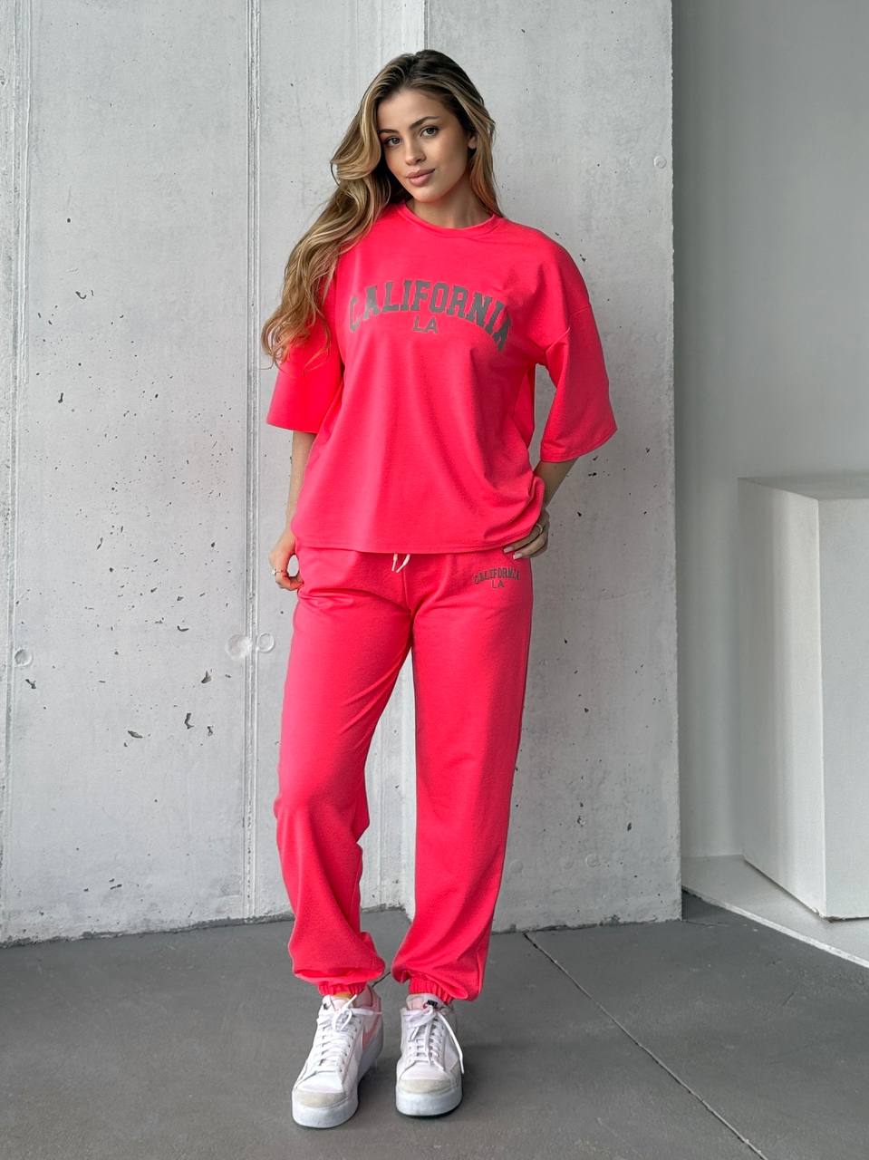 Костюм «California» Футболка со спущенным плечом+штаны с карманами корраловый