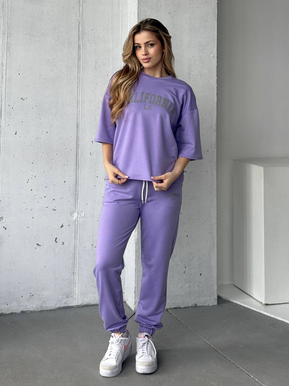 Костюм «California» Футболка со спущенным плечом+штаны с карманами лаванда