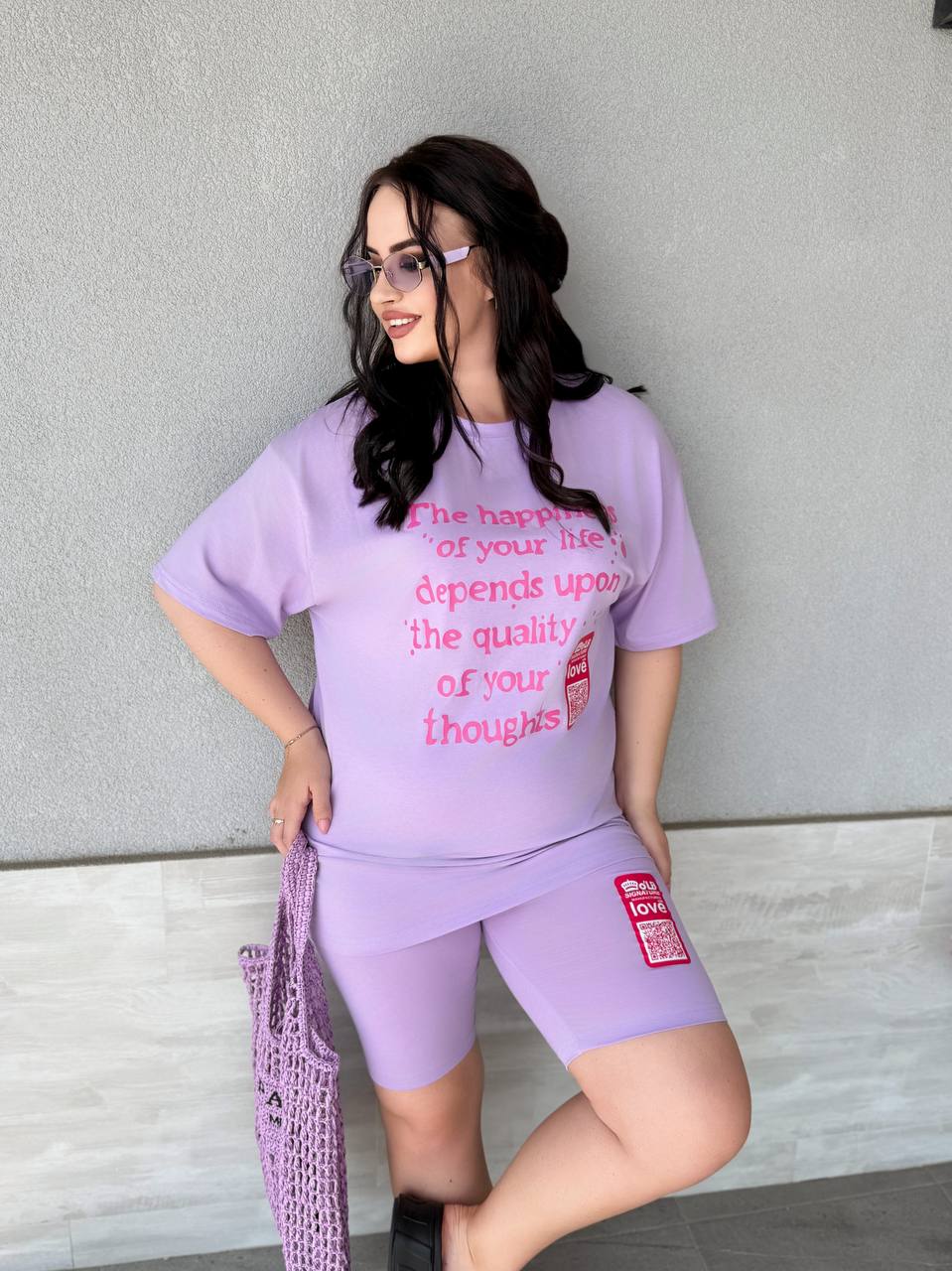 Костюм двойка: Футболка оверсайз и велосипедки с накатом лаванда