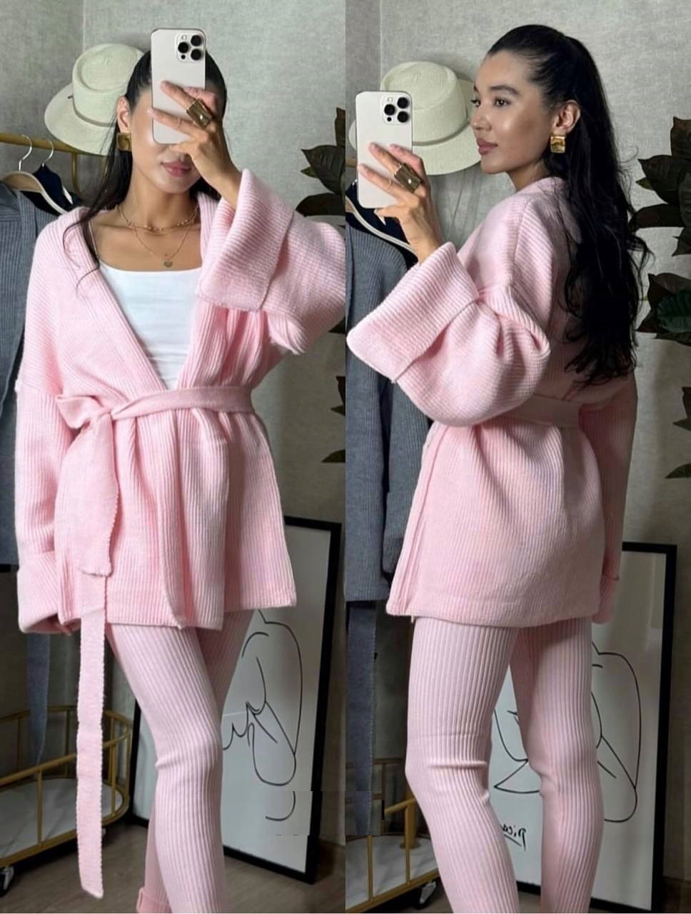Головна » Магазин » Одяг » Жіночі костюми » Костюм двойка кардиган с поясом+штаны розовый