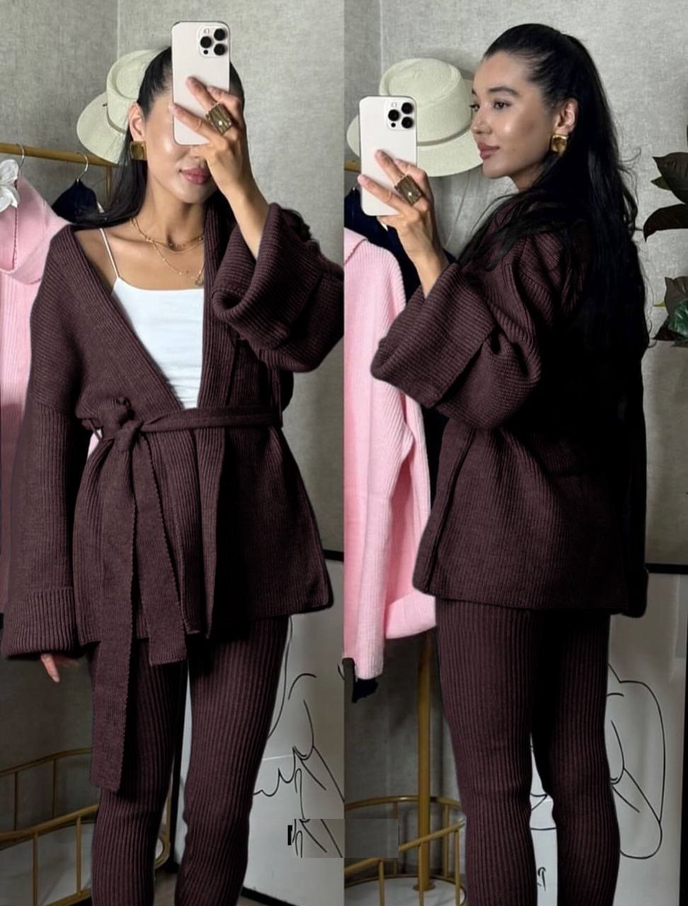 Головна » Магазин » Одяг » Жіночі костюми » Костюм двойка кардиган с поясом+штаны шоколад