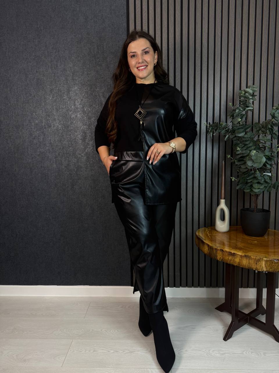 ▫️Стильный костюм-двойка выполнен из двунитки и экокожи, которая не будет обидеть после стирки