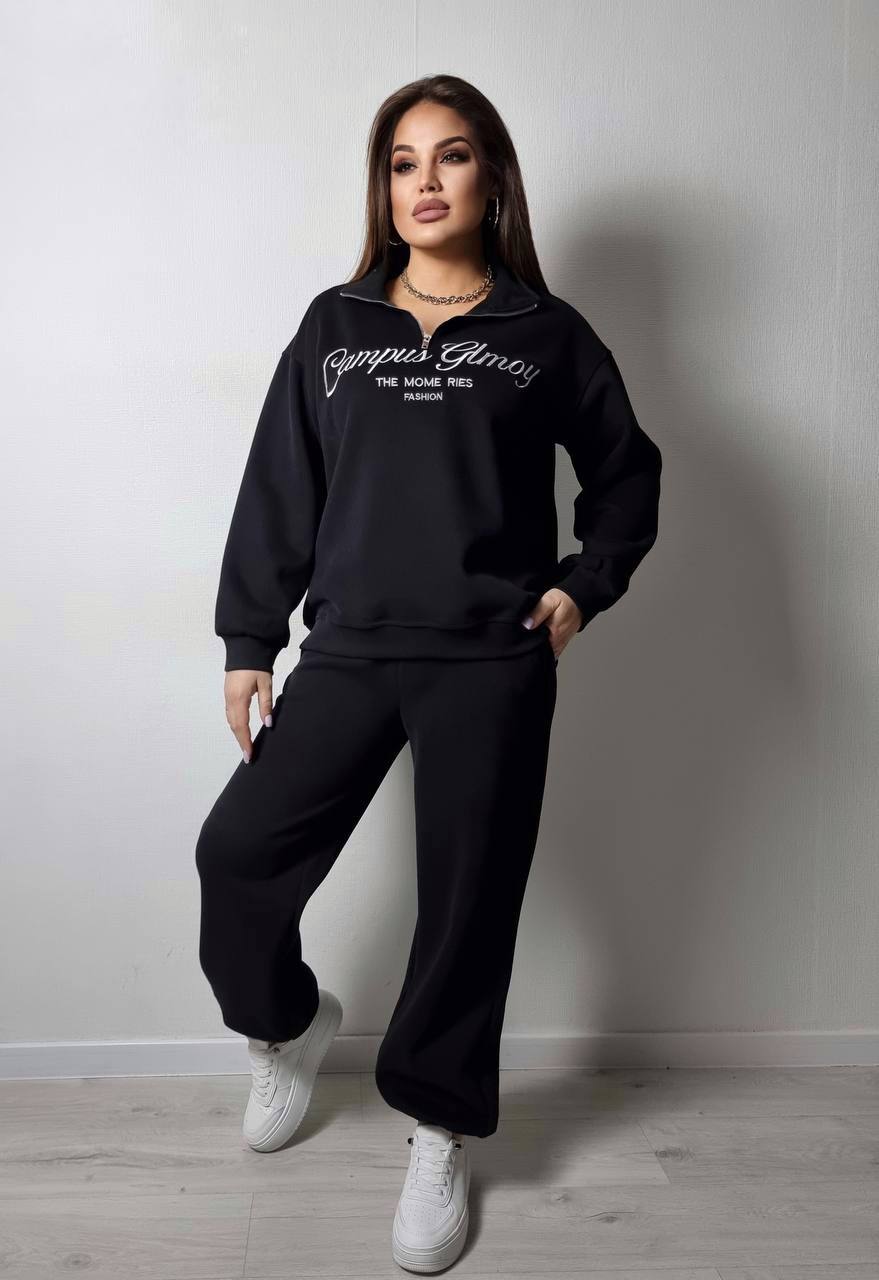 Костюм двойка (Кофта на змейке с накаткой+брюки на резинке) черный