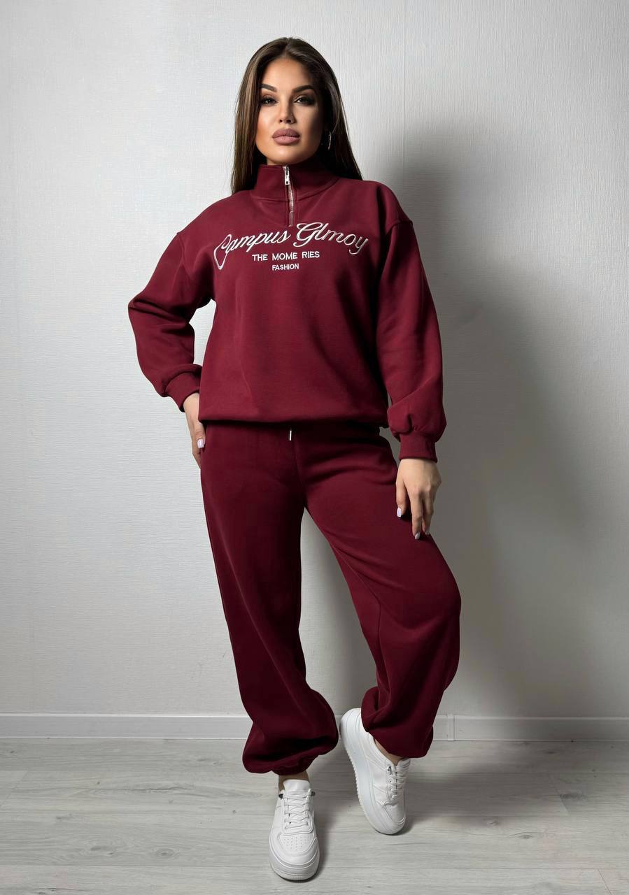 Стильные брюки, высокая посадка, на резинке, внизу манжет, карманы. Кофта на змейке.