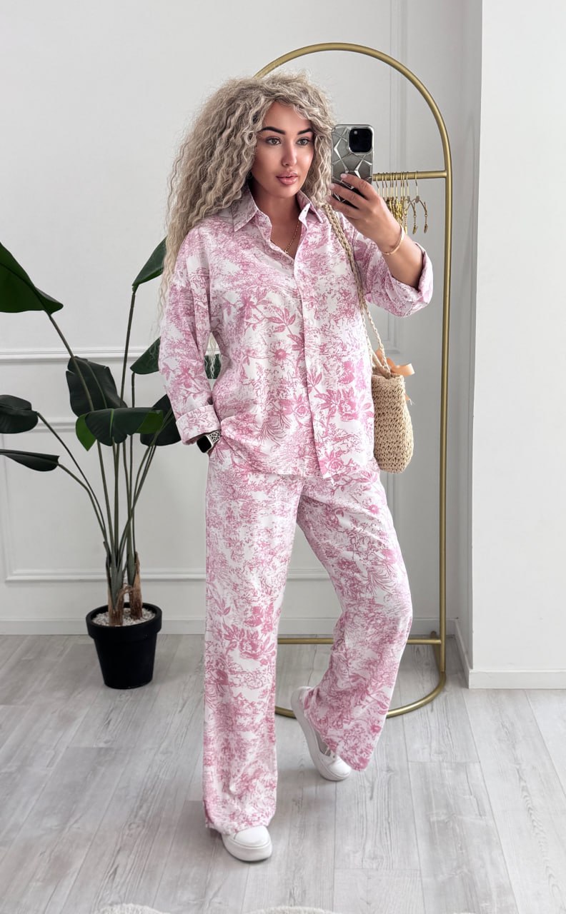 Костюм двойка, штаны палаццо + рубашка свободного кроя, на поясе есть шнурок