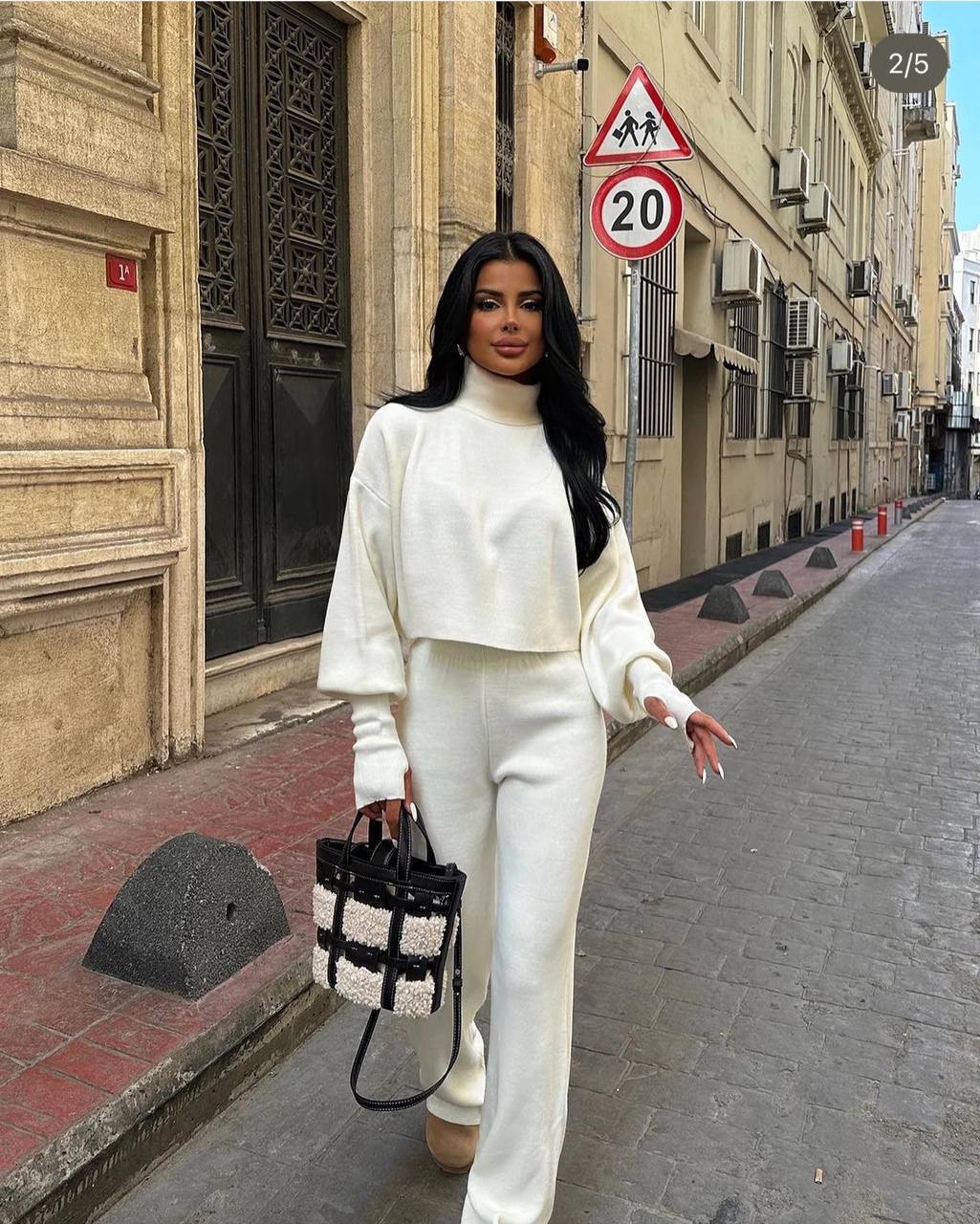 Костюм-двойка: укороченный свитер и клешенные штанишки белый