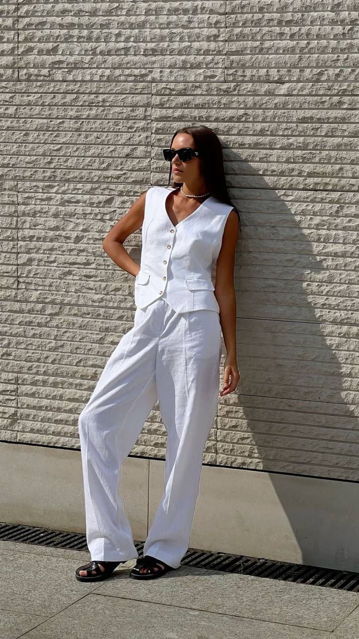 Костюм двойка Жилет на пуговицах+брюки палаццо (хлопок жатка) белый