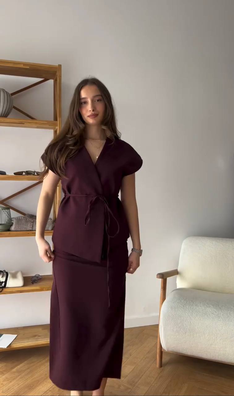 Головна » Магазин » Одяг » Жіночі костюми » Костюм двойка: Жилетка на подкладке и юбка марсал