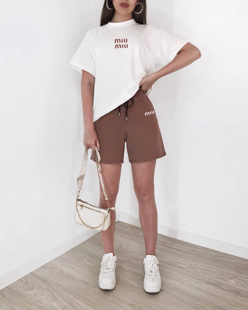 Костюм двухнитка (футболка и шорты с накаткой) белый+мокко