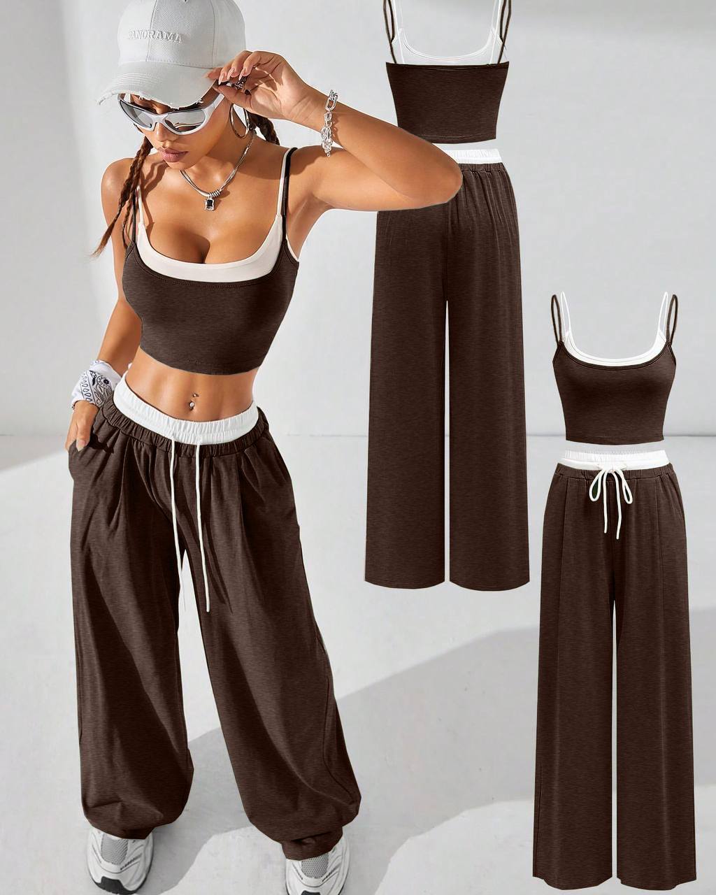 Костюм: двухслойный топ + палаццо (двухнить) шоколад