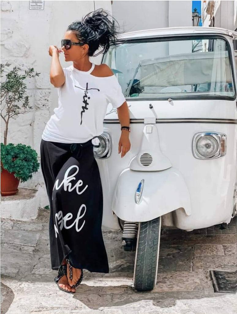 Костюм футболка + длинная юбка белый с черным