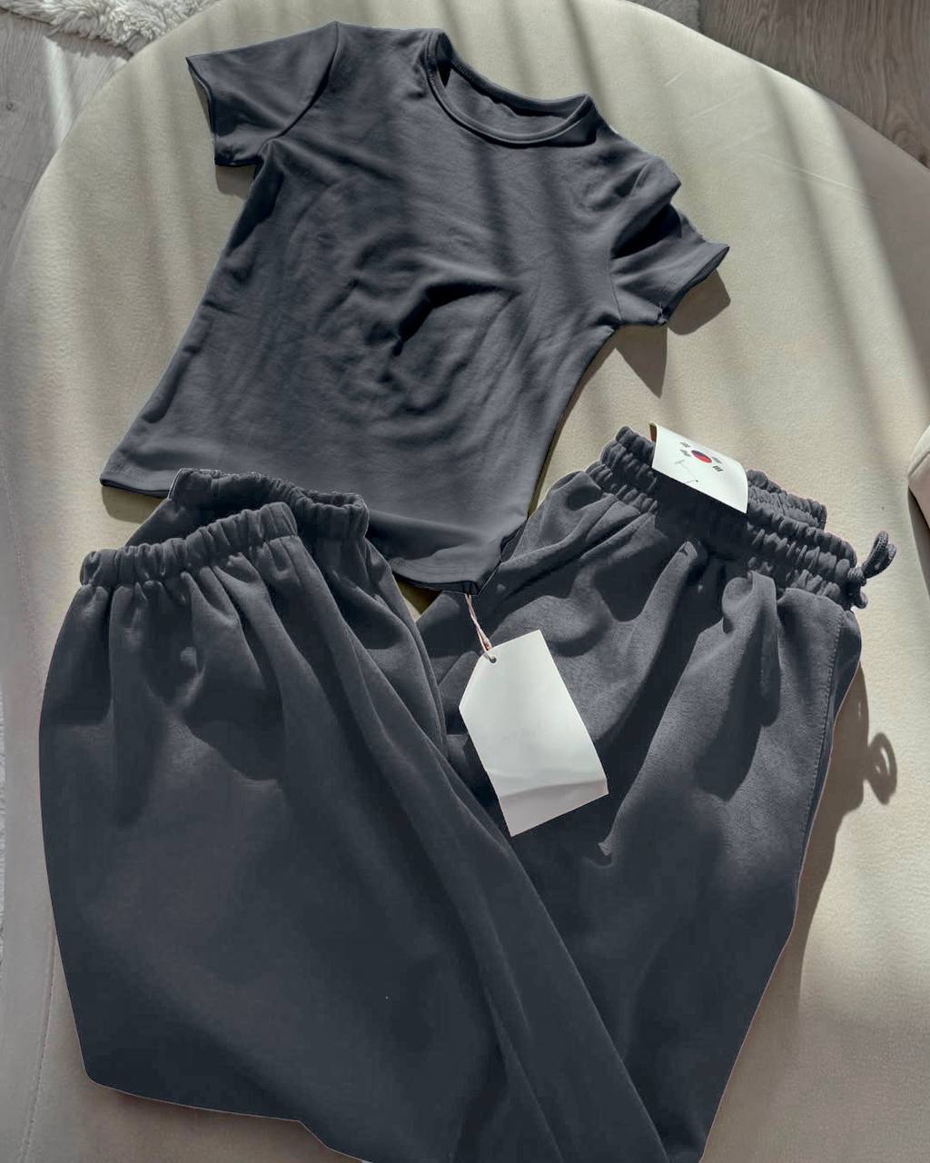 Костюм: футболка + джоггеры свободного кроя (двухнить) графит