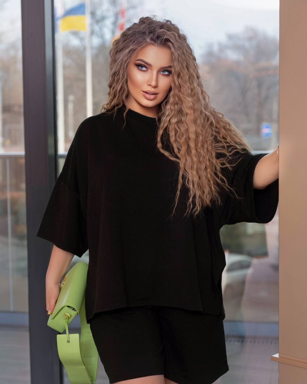Головна » Магазин » Одяг » Жіночі спортивні костюми » Костюм футболка и шорты широкого кроя черный