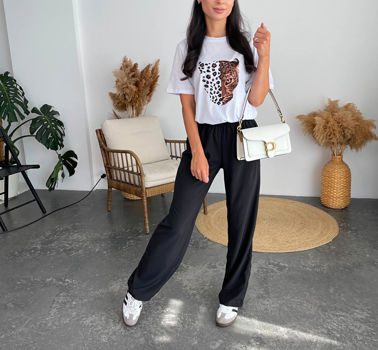 Головна » Магазин » Одяг » Жіночі костюми » Костюм (футболка коттон+шелковистые брюки прямого кроя) с принтом белый