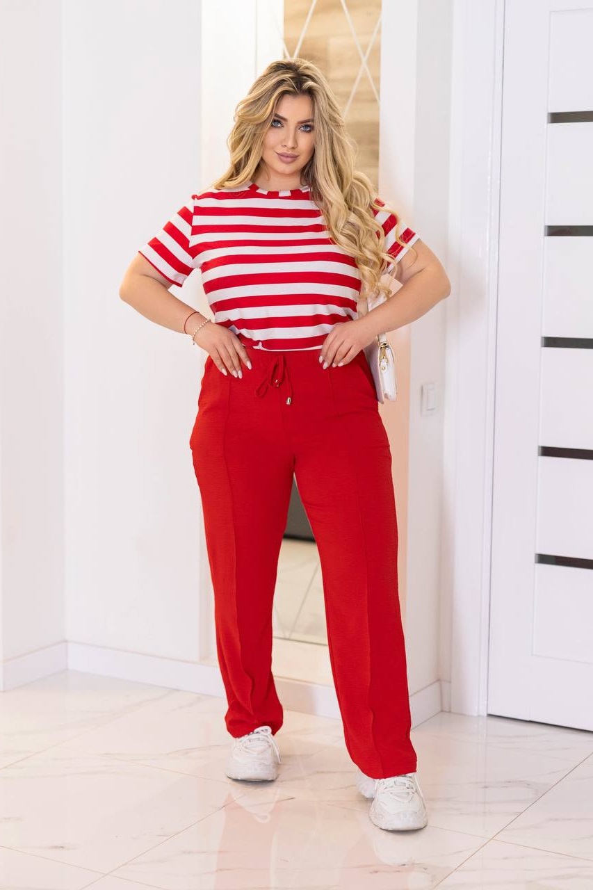 Костюм (футболка с коротким рукавом в полоску +брюки со стрелками из креп жатки) красный