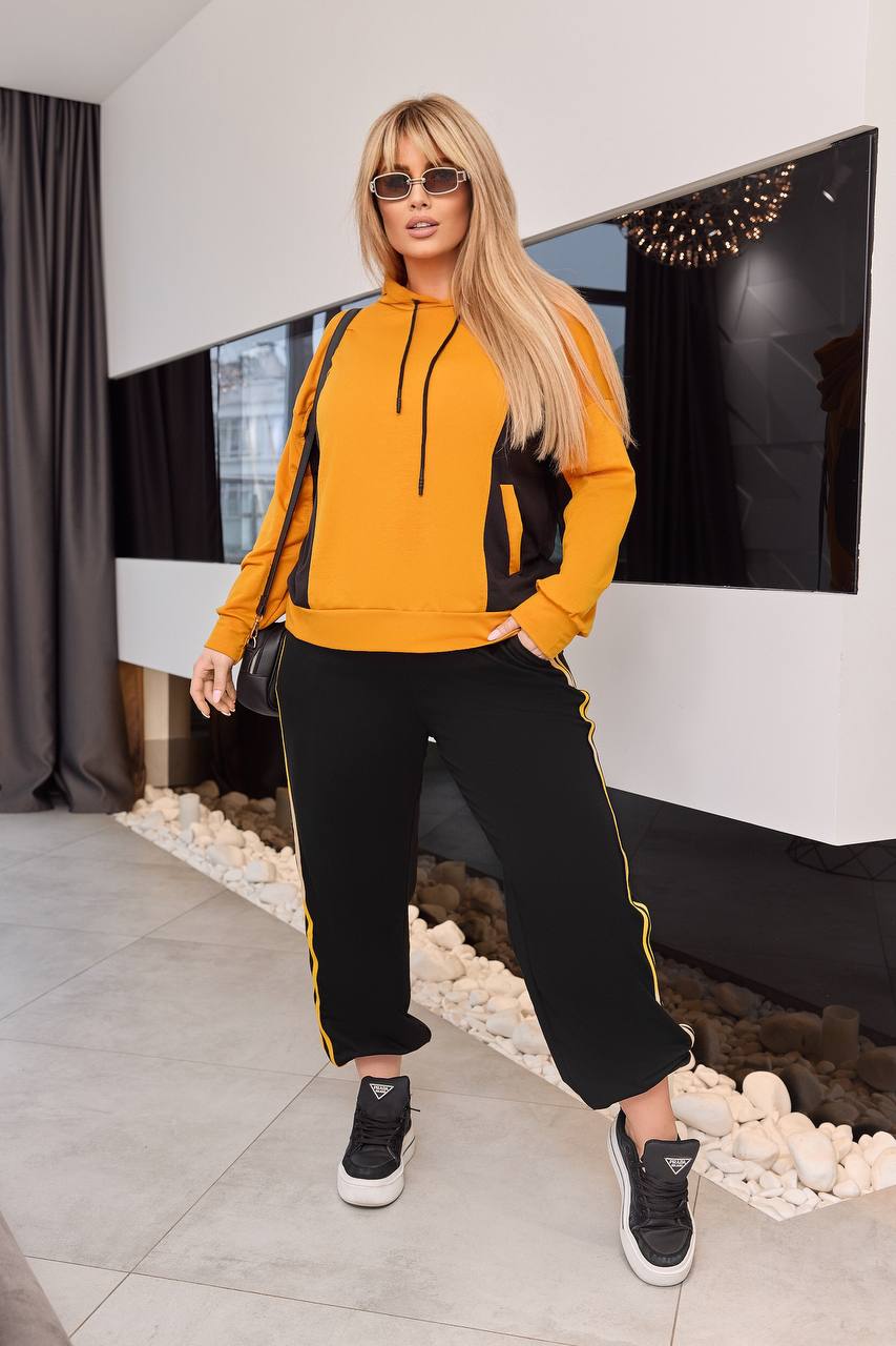 Костюм Худи свободного силуэта+Брюки высокая посадка (двухнить) горчица+черный