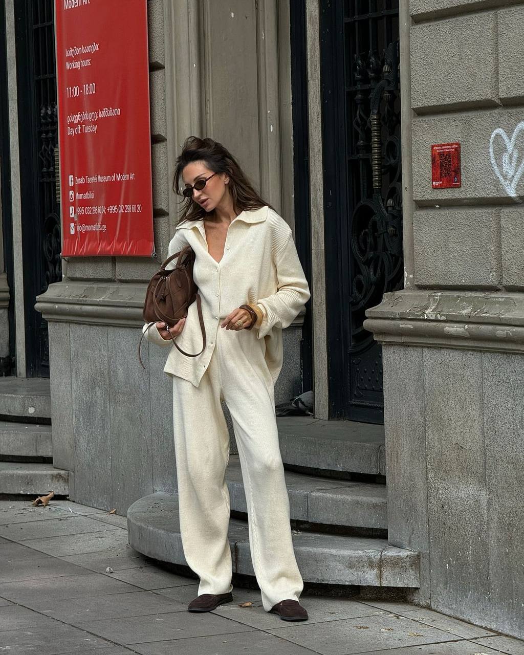 Головна » Магазин » Одяг » Жіночі костюми » Костюм из ангоры свободного кроя (брюки+кофта на пуговицах с отложным воротником) молочный