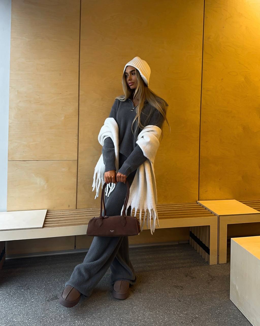 Костюм из ангоры в рубчик (свободные брюки+кофта с воротником стойкой на молнии) графит