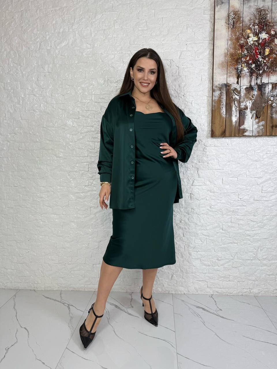 Костюм из атласной ткани (удлиненная рубашка+платье приталенного силуэта на бретелях) бутылка