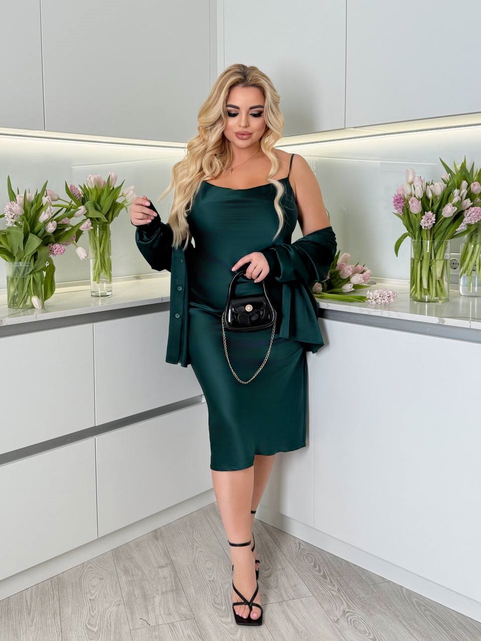 Костюм из атласной ткани (удлиненная рубашка+ платье прямого кроя на бретелях) бутылка
