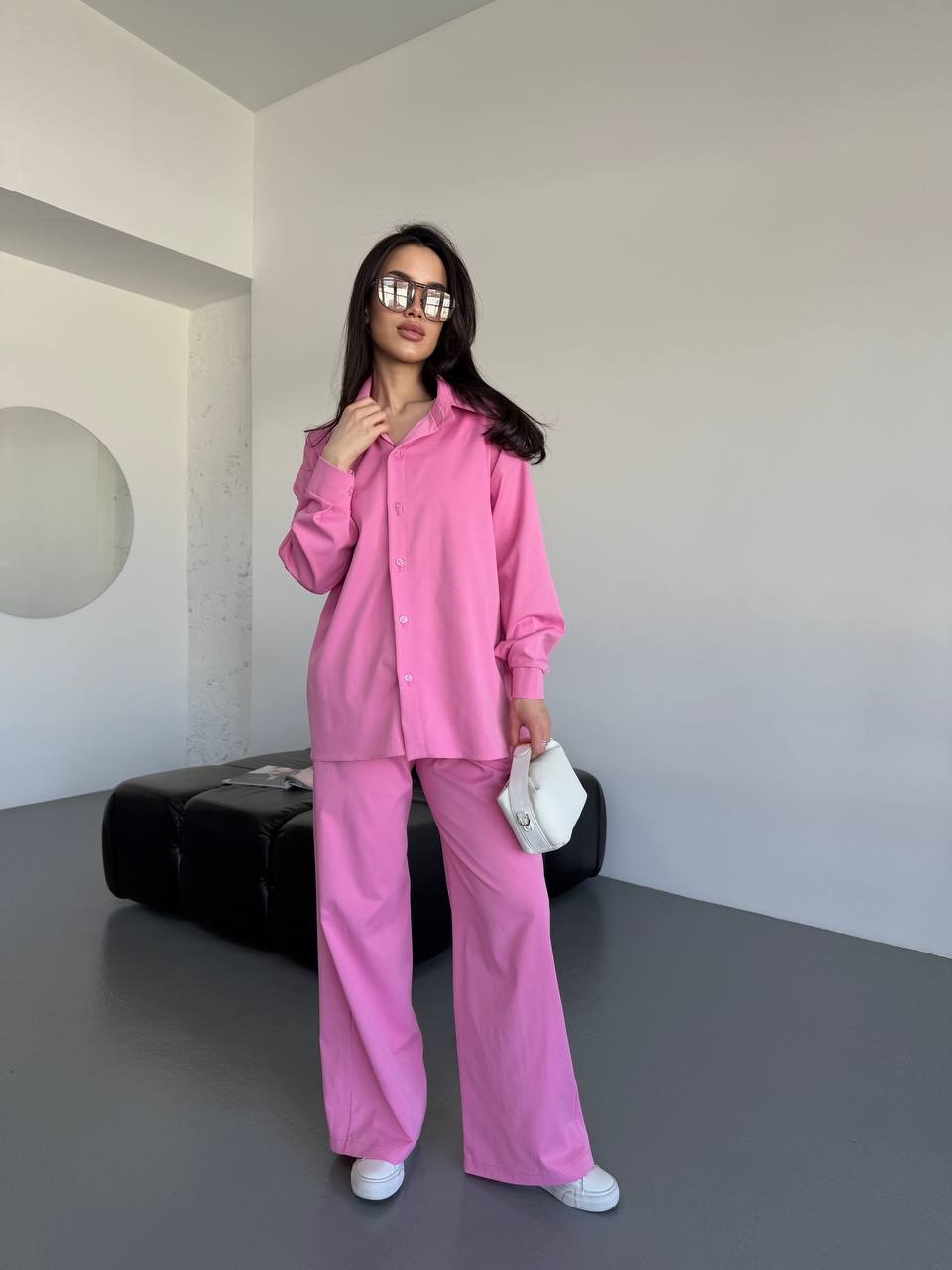 Костюм из коттона (рубашка с длинным рукавом+свободные брюки) розовый