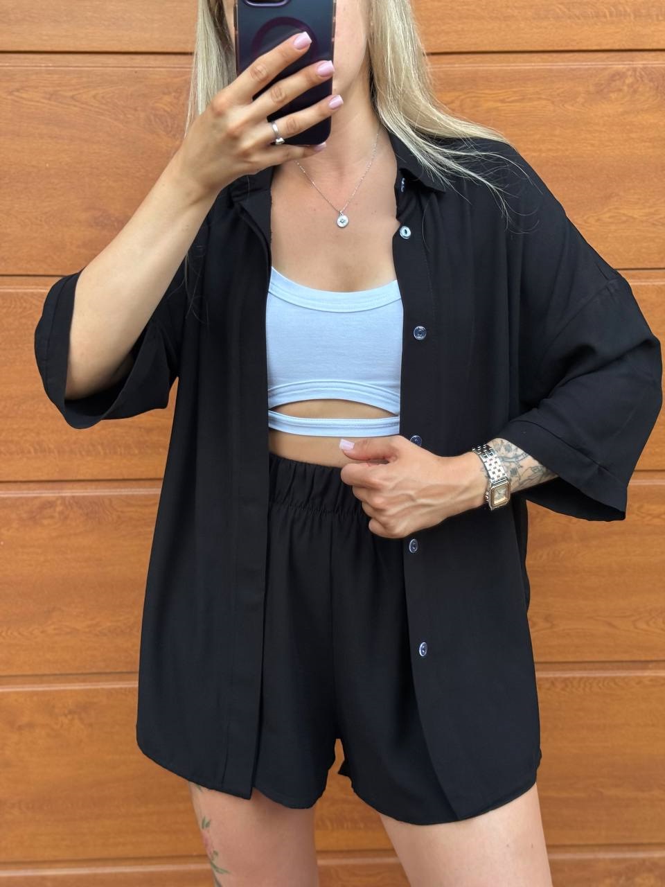 Костюм из натуральной ткани (рубашка и шорты) черный