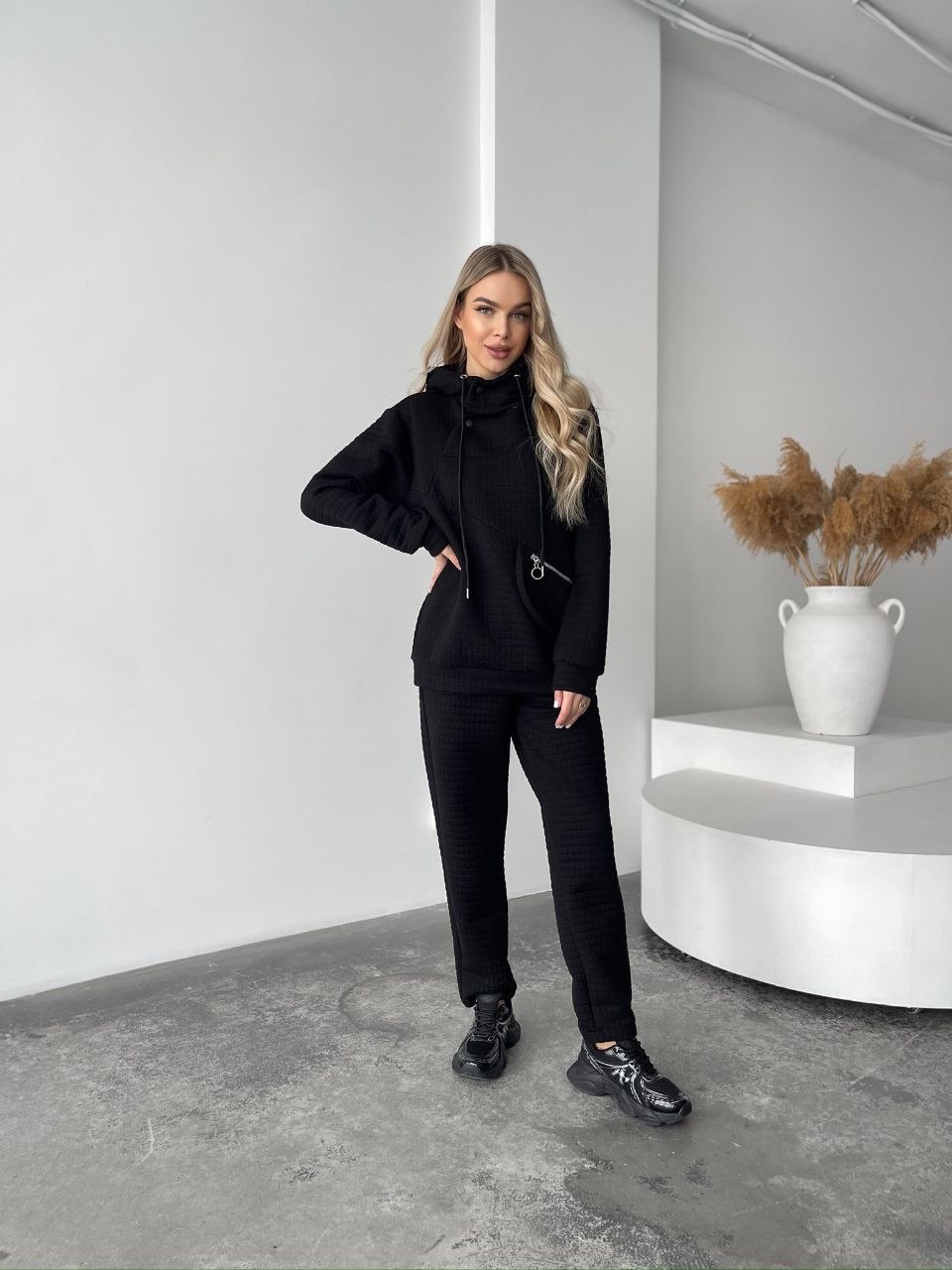 Костюм унисекс из стеганного трикотажа (не очень тянется). Брюки “момы” с высокой посадкой, с накладными карманами.