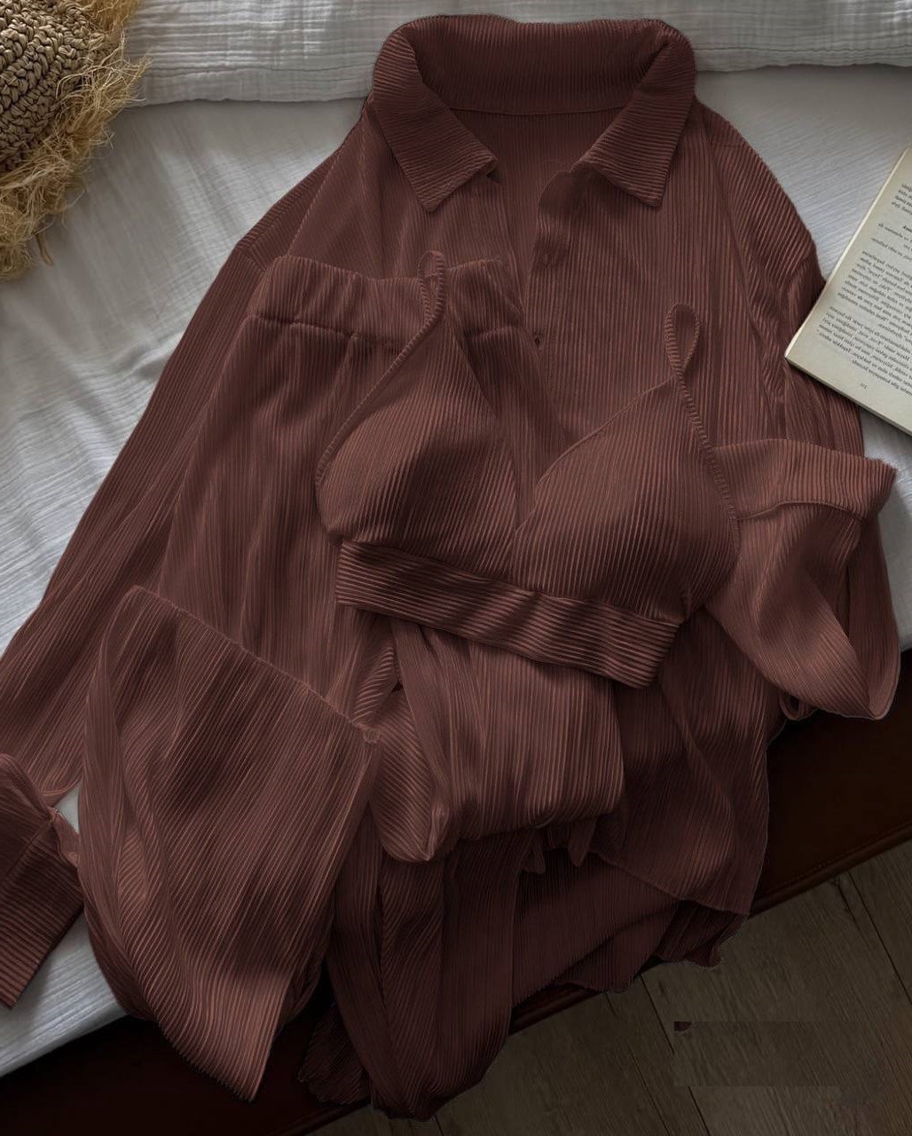 Головна » Магазин » Одяг » Жіночі костюми » Костюм из ткани гофре свободного кроя (рубашка+брюки+топ) шоколад