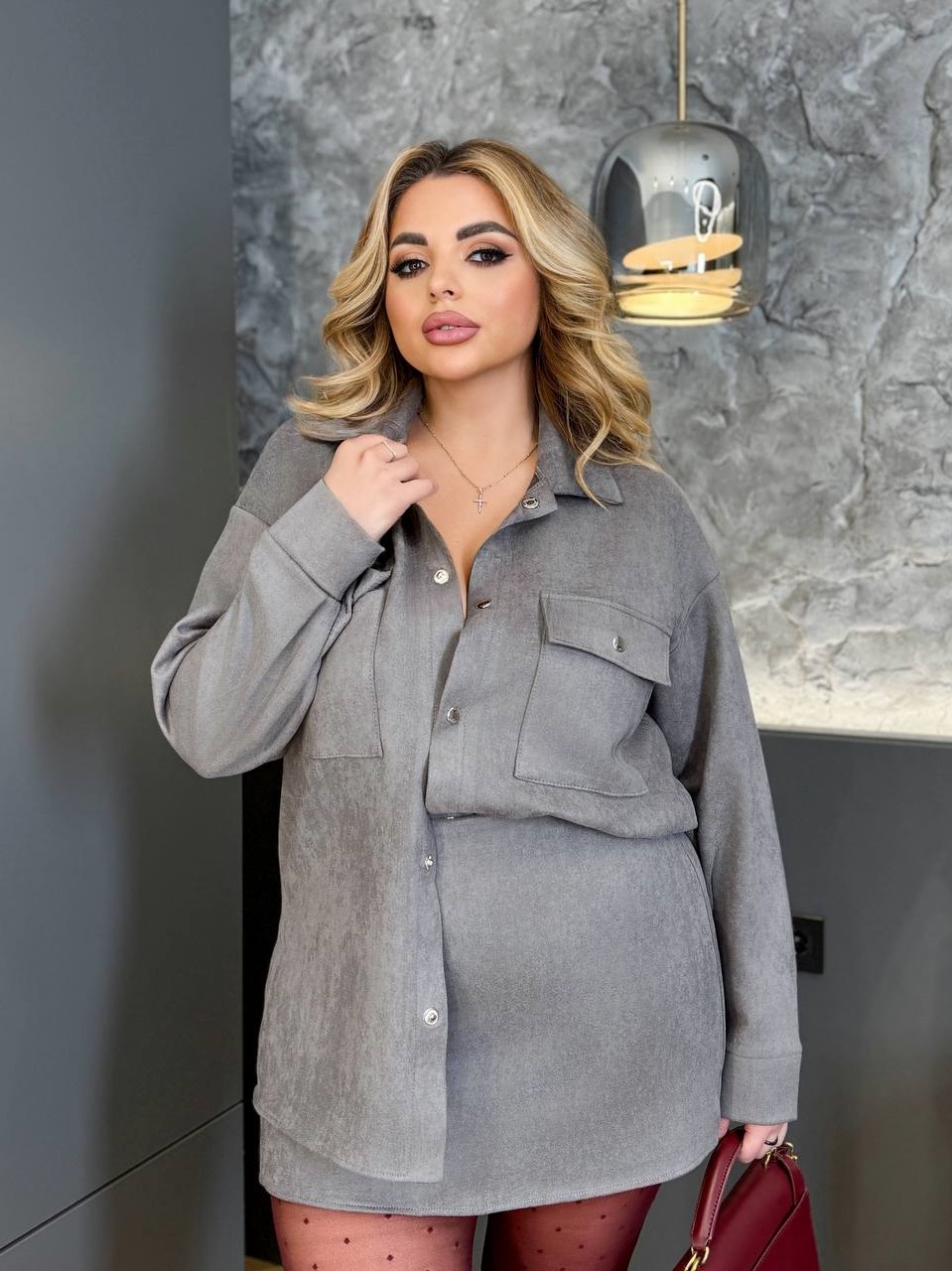 Рубашка оверсайз в сочетании с юбкой-шорты подойдет смелым и ярким девушкам.