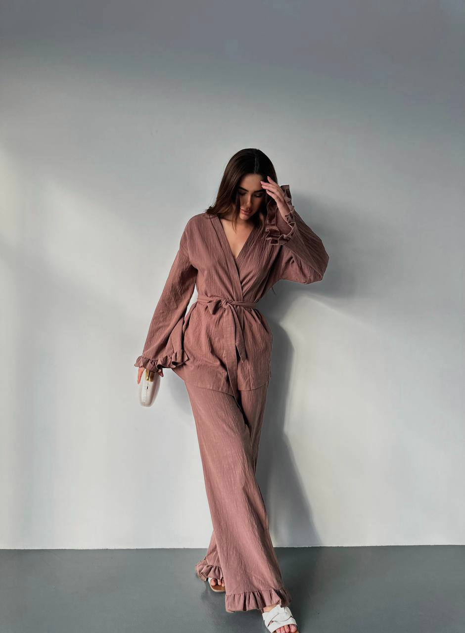 Тренд сезона Акцентный оверсайз костюм с декоративными рюшами✨