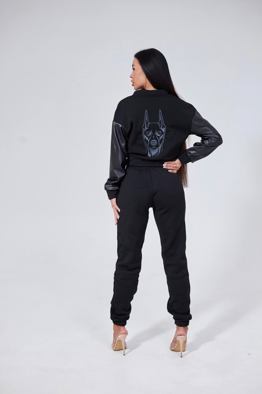 Мягкие кожаные рукава и наша фирменная вышивка серебряной нитью в виде добермана