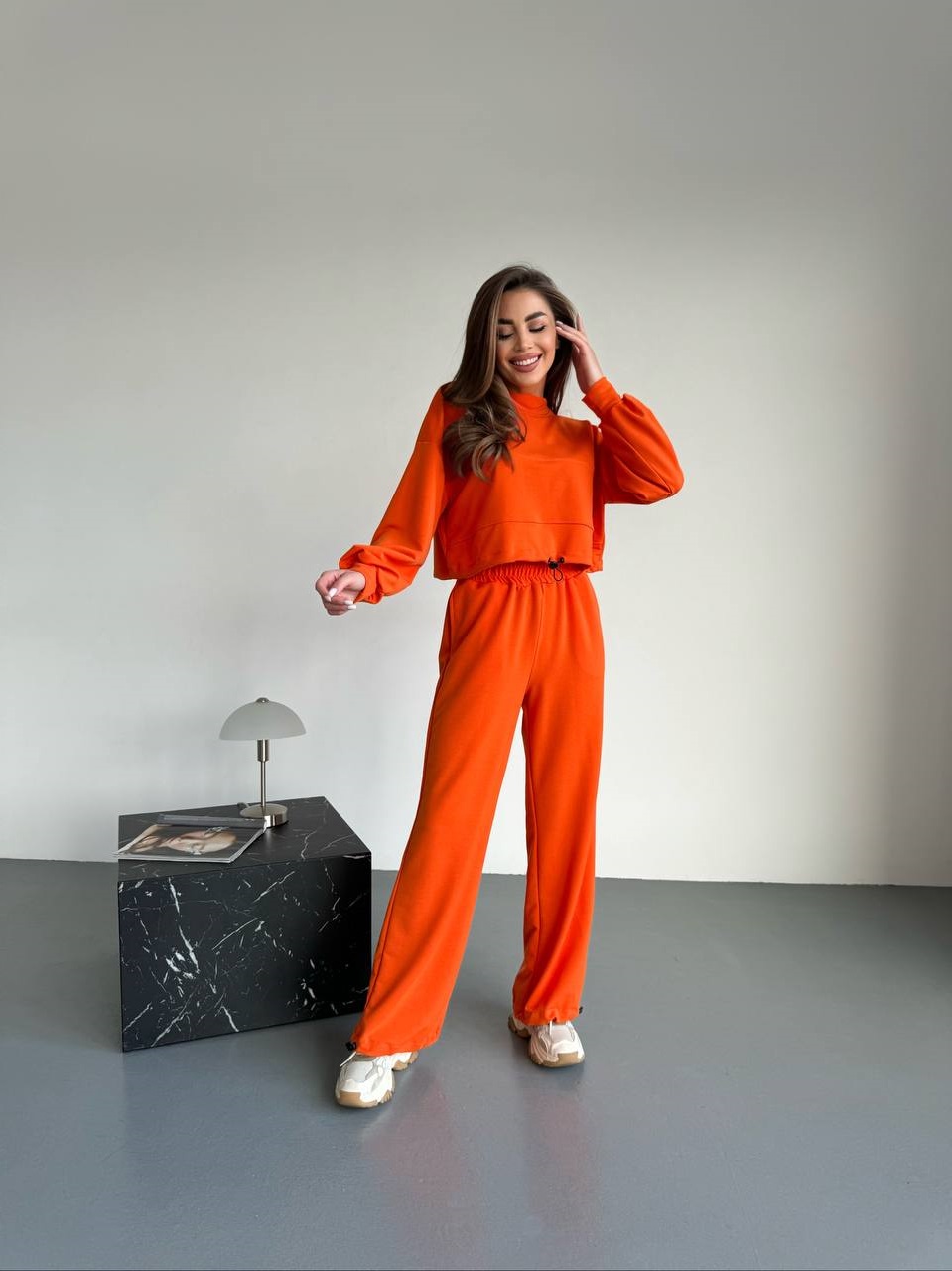 Головна » Магазин » Одяг » Жіночі спортивні костюми » Костюм (кофта укороченная свободного кроя+штаны) оранжевый