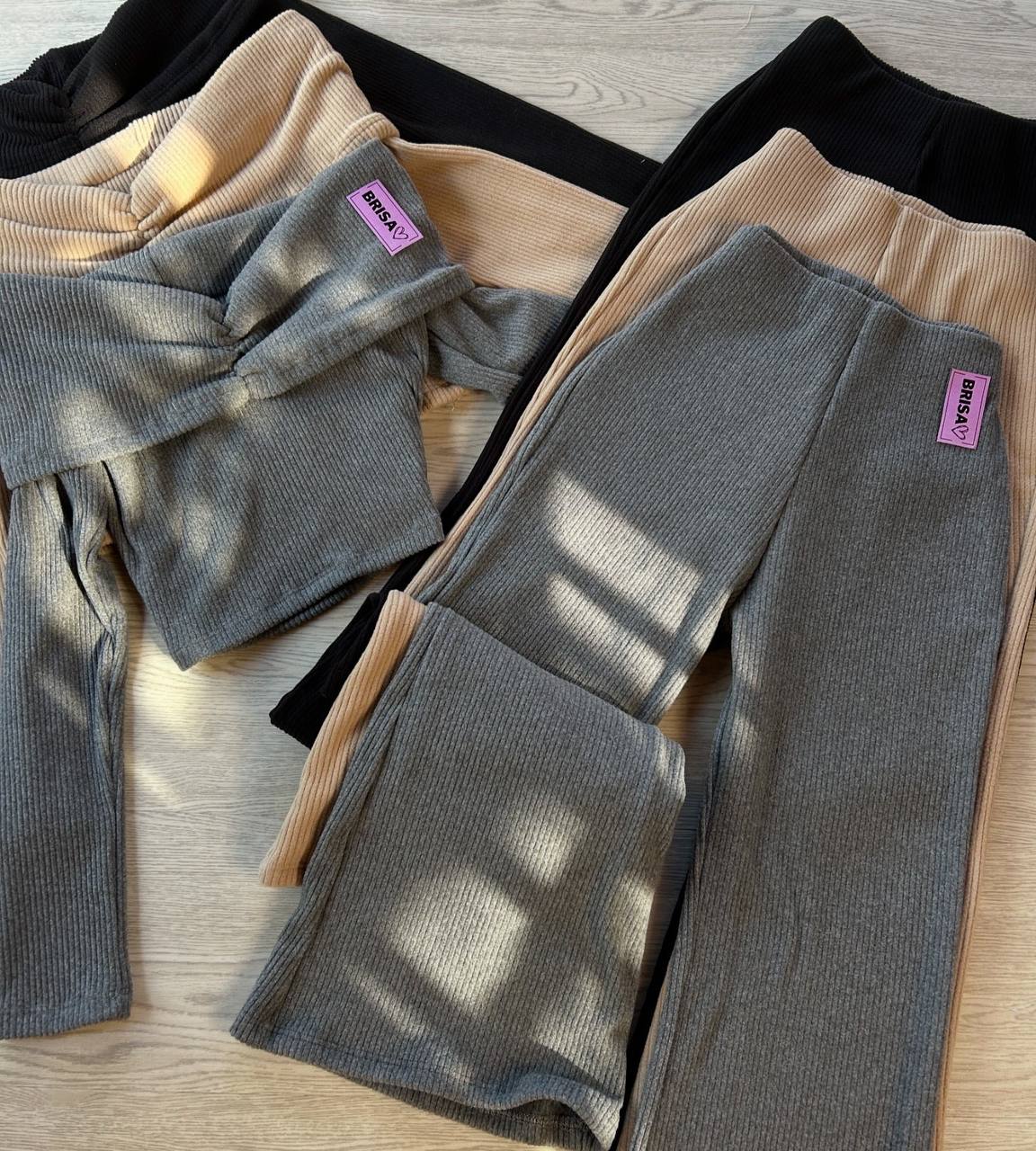 Костюм : кофточка с открытой плечами + штаны палаццо из плотной ткани