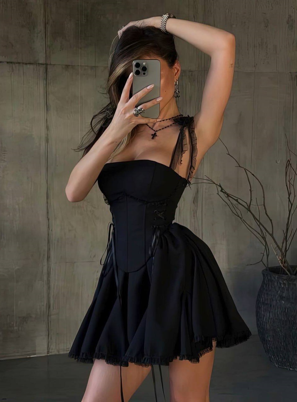 Изысканные детали, шнуровка по бокам и изящный силуэт подчеркивают фигуру.