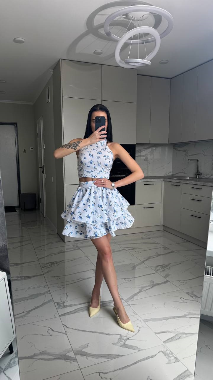 Будьте першим, хто залишив відгук “Костюм летний (топ с вырезом на спинке+пышная двухслойная юбочка) белый с голубым мелким принтом”“