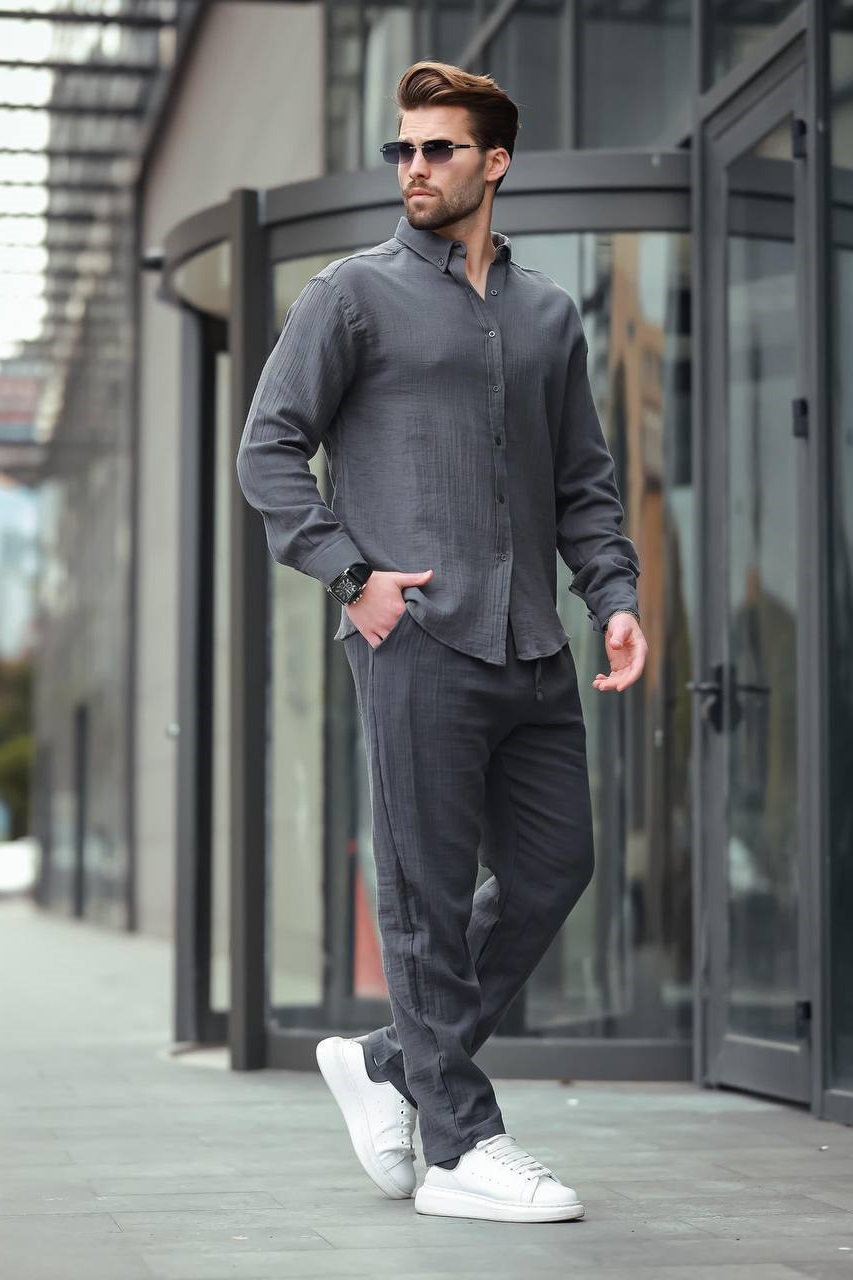 Головна » Магазин » Одяг » Чоловічі костюми » Костюм льняной мужской (рубашка+брюки) графит