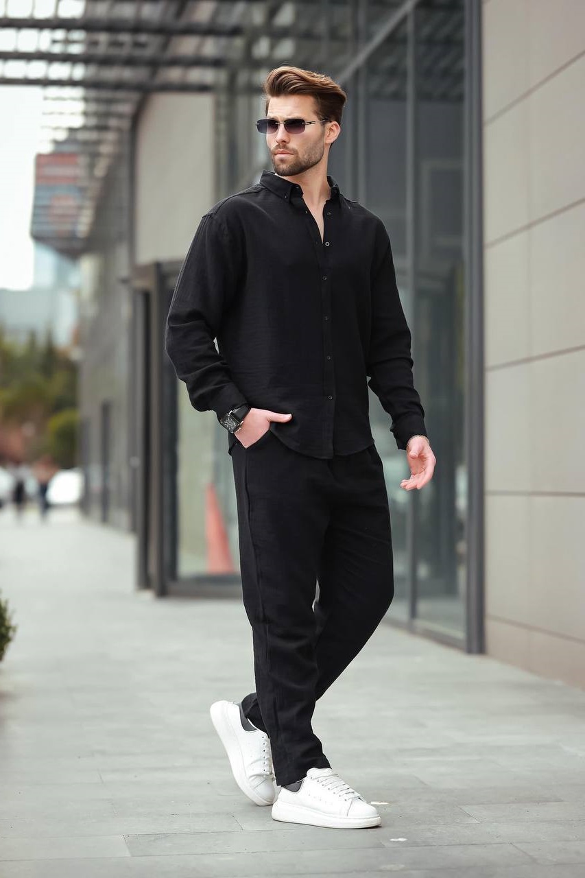 Головна » Магазин » Одяг » Чоловічі костюми » Костюм льняной мужской (рубашка+брюки) черный