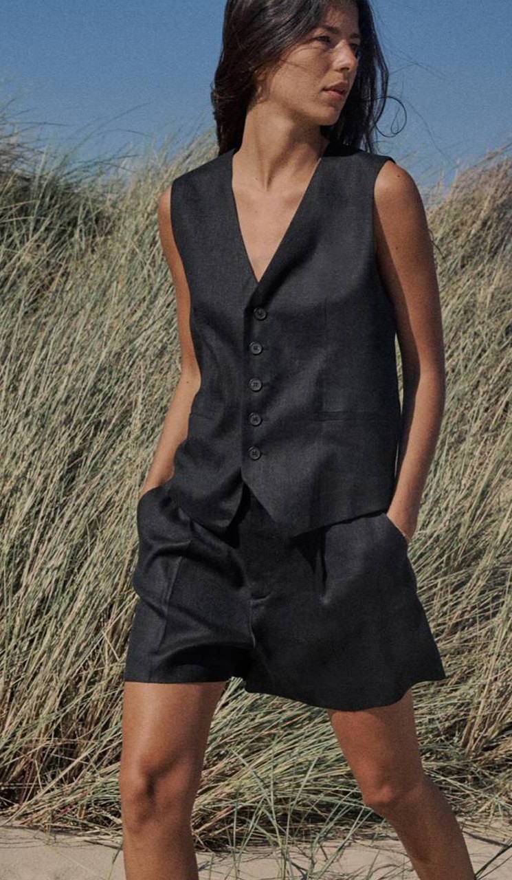 Костюм льняной (жилет + шорты) черный