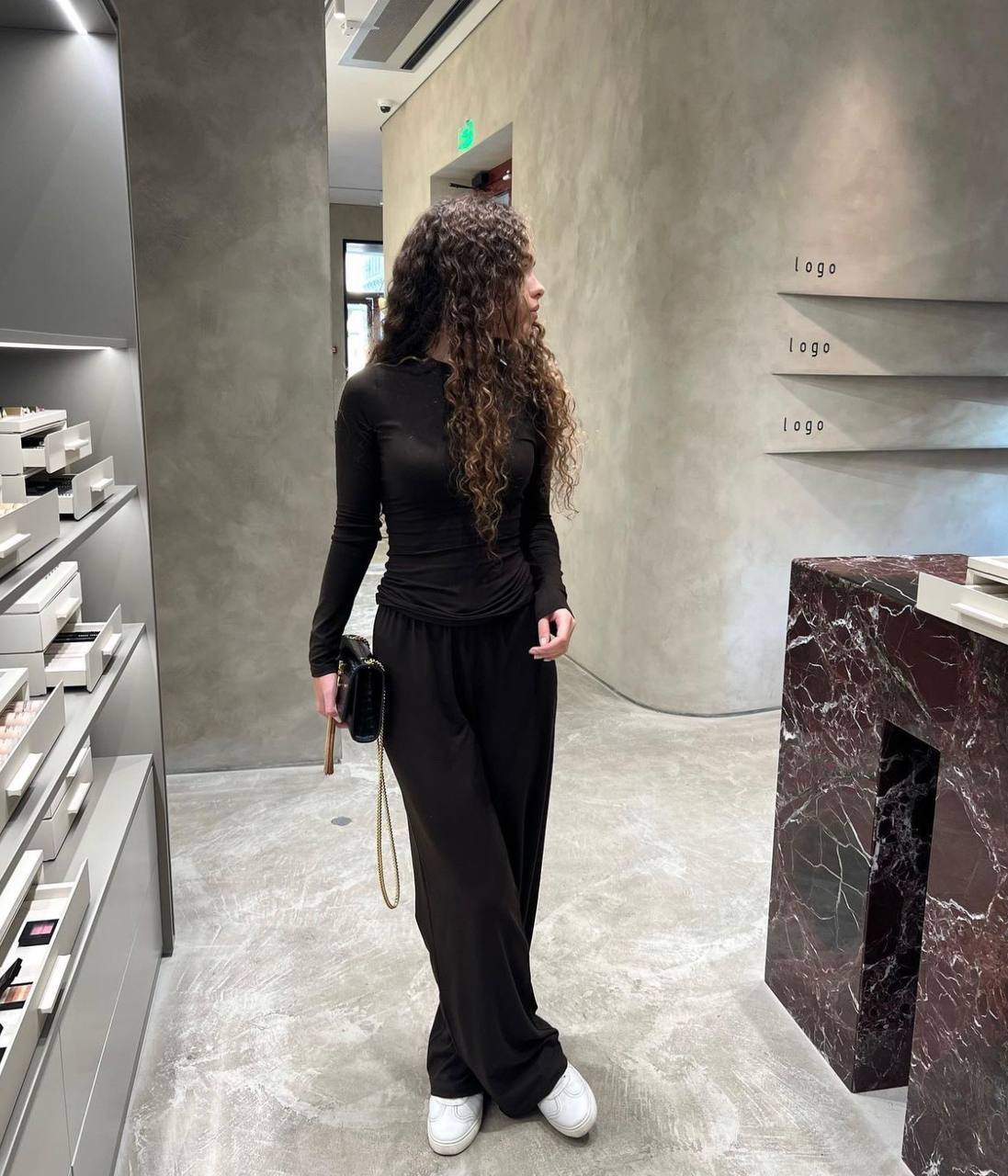 Отличная база для теплых осенних дней: хороший крой, базовый цвет и натуральная ткань. Лонгслив с вырезами для пальчиков❗️Брюки палаццо свободного кроя, высокая посадка.