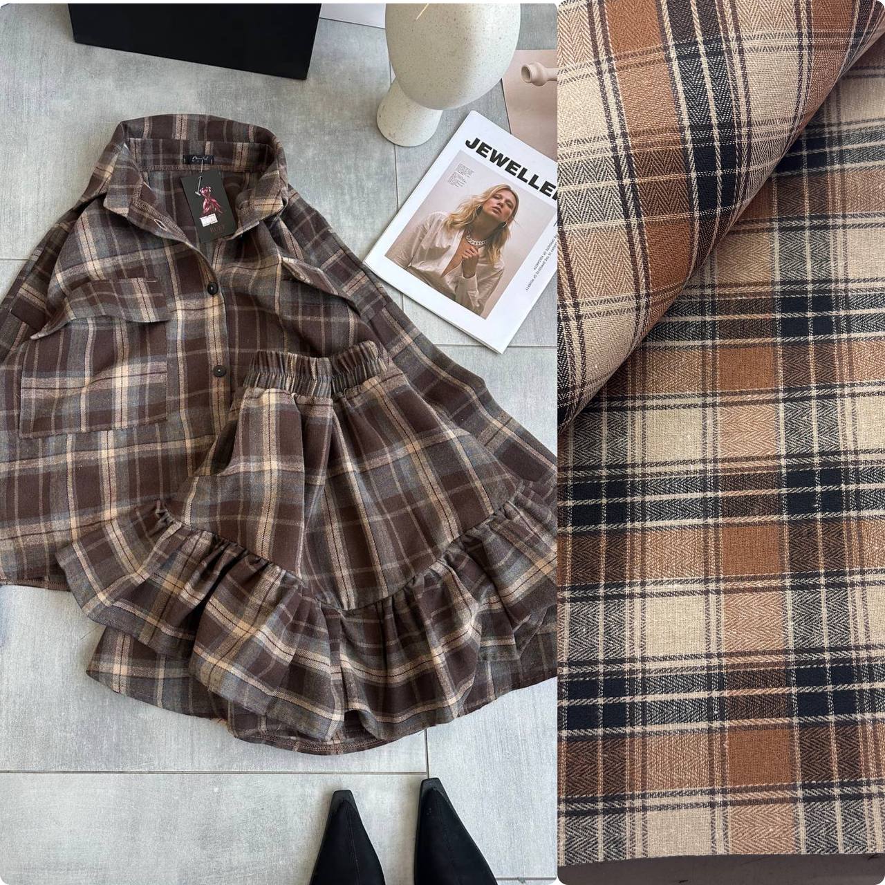 Клетчатый принт добавляет изюм и делает этот сет универсальным – он все равно будет эффектно выглядеть как в повседневных, так и в деловых или вечерних образах.