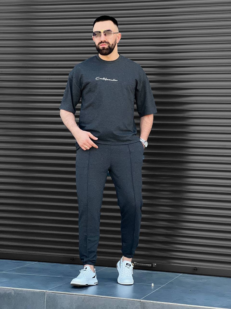 Костюм мужской брючный: футболка свободная+штаны пояс и низ на резинке графит